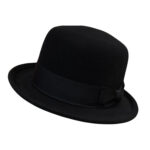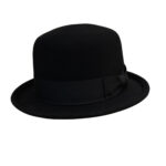 Soft Black Bowler Hat, English Wool Bowler Hat, Formal Round Crown Derby Hat with Curved Brim, Formal Derby Hat with Curved Brim, Men’s Bowler Hat with Sweatband & Satin Lining