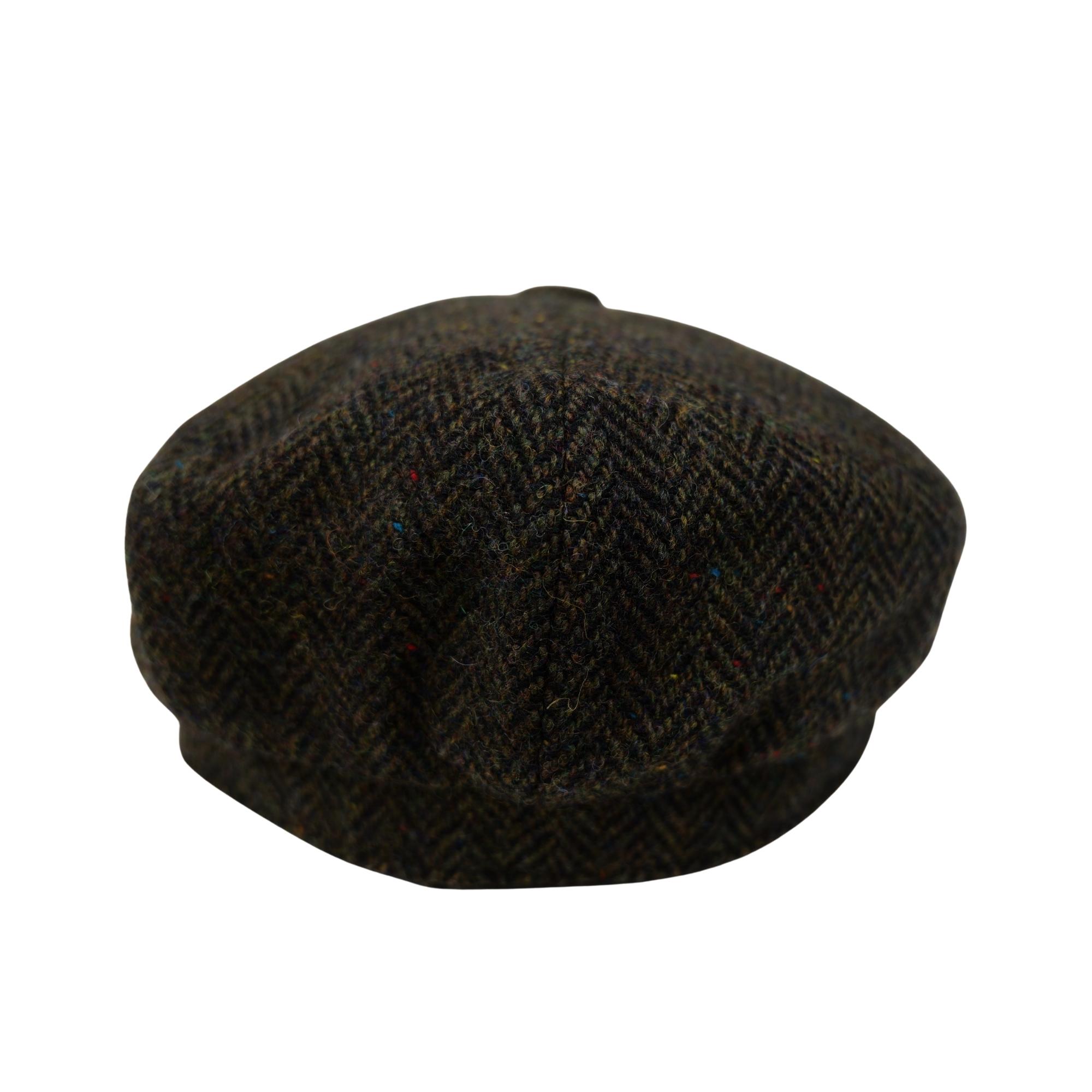 Scott&Gibson Tweed Baker Boy Cap British Made Arran Traditional Olive Green Herringbone Cap 100% Wool in 5 Sizes Outer Hebrides of Scotland